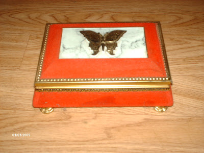 The picnic basket (another?) was $5.00 and everything else cost a total of $3.40. Except the jar was free. Which brings me to the jar. And the digging in the trash stuff. We were in the town where I got this junk last year. Ever since last year I have been looking forward to this weekend with great anticiaption. Annual Clean Up. If you don't want it, put it by the curb and the city will pick it up. If there's anything left! Some people throw absolute crap out in big heaps- matresses, sticks, lumber, broken TV's, etc. and nothing looks like a treasure. Then there are the people that lay it out like a department store just hoping someone will take things. I spotted such a line up by the curb today. Everything looked to be in clean and good condition, but the jar was all I decided to take. This weekend, gues where I will be? Junkin' curbside. Oh, yeah.